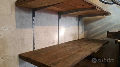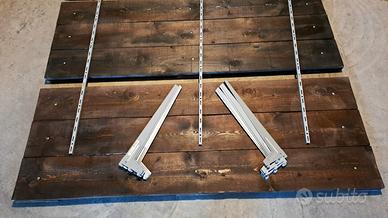 Blocco unico . 3 mensole 160 × 57 cm. 2 mensole 120 × 54 cm. 1 mensola 112 × 38 cm. 1 mensola 109 × 60 cm. 1 mensola 106 × 57 cm. 15 reggimensola da 50 cm. 3 cremagliere da 150 cm. 2 cremagliere da 200 cm.