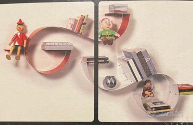 Mensole/ripiani componibili in una libreria di design in acciaio armonico bianca formata da 3 mensole da 60 cm ancora in confezione originale .