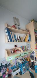 nr. 1 mensola per boiserie o muro, con spalletta posteriore e curva laterale di tenuta libri, in legno colore frassino: