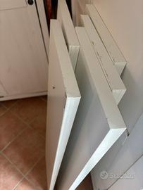 Set di sei mensole ikea legno bianco. 120 x30 cm. Possibilità di acquistarle anche a coppia. Manca qualche vite.
