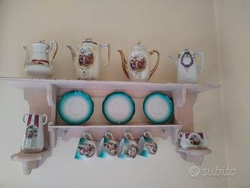 Antiche mensole in legno e porcellane