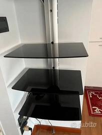 Vendo supporto a muro con tre mensole in vetro temperato nero. Mensole 30 x 42 Nuovo, lo vendo per inutilizzo. Consegno solo personalmente in Torino, non spedisco.