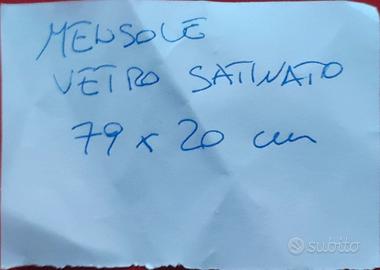 Mensole vetro satinato azzurrate (ne ho 2 ), con staffe in alluminio per posa in opera. misure 79 cm x 20 cm. Il prezzo è da intendersi per una sola mensola