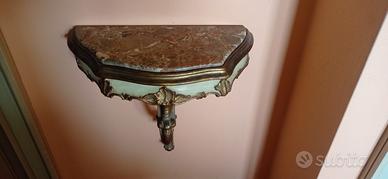 Graziose mensoline da comodino in marmo e legno dipinte in oro del 900