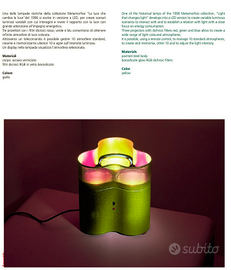 Vendo, completa di telecomando, la storica lampada di design realizzata da Ernesto Gismondi, per Artemide- Metamorfosi. Transazione diretta e per contanti. La lampada si trova a Mestre.Non spedisco. Finchè presente in bacheca, l’oggetto è disponibile. Astenersi perditempo.