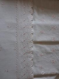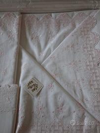 meraviglioso set lenzuola matrimoniale ricamate bianco e rosa nella confezione originale nuova mai aperta
