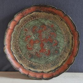 Sottopiatto fiorentino anni 60 dipinto a mano in oro, verde e arancio, decorato secondo le antiche tecniche del 300.