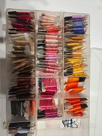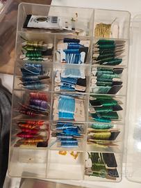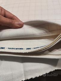 merceria mista per punto croce in blocco ,bordure lini e tele matassine 49 nuove e più di 70 usate Dmc qualche prodotto da ricamare sempre Dmc e nastri perline ,