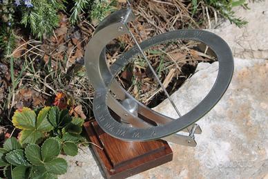 meridiana orologio solare equatoriale sfera armillare in acciaio inox da tavolo, altezza cm 21 circa diametro dell'anello delle ore cm 11,5. La condizione "Nuovo".