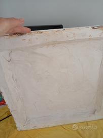 Grande meridiana vintage in polvere di gesso e cemento. Lato 46x47. Prof cm 6. Ha 2 ganci molto robusti per appenderla. Ritiro a Lavinio. € 45