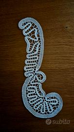 Vendo come da titolo queste due tipologie di merletto di tombolo fatto a mano, per applicazioni su tovaglie e biancheria varia. 15 pezzi per il modello 28.5 cm x 9cm x 5cm, e 12 pezzi per il modello 7 cm x 5cm.