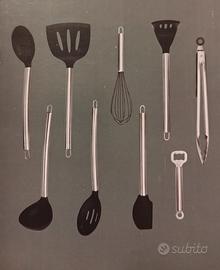 Vendo mestoli cucina, 10pz come da foto completi; nuovi MAI UTILIZZATI. Base rotante, divisorio Misure del set riportate nelle foto