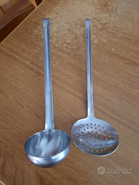 Causa inutilizzo, vendo mestolo da brodo grande in acciaio inox 18/10 made in Italia diametro 10 cl 25 nuovo ancora etichettato e scola pasta come da fotografia in acciaio inox 18/10 made in Italia diametro 11 nuovo ancora etichettato. Euro 10 cadauno.