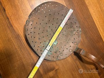 L'oggetto nell'immagine è un mestolo forato in rame, noto anche come schiumarola o colino.