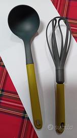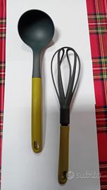 Mestolo e Frusta bellissimi Nuovi grigio/verde lunghi 30 e 29 cm.Mai Usati color grigio/verde