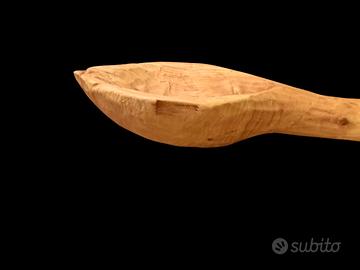 mestolo in legno di tiglio intagliato a mano con sgorbie e coltelli. rifinito con olio d' oliva alimentare formato cm. 38x8x9