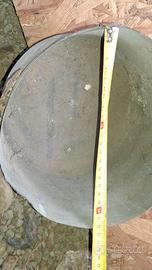 Mestolo Vintage, anni 1950. Grosso cucchiaio, di forma molto incavata e fornito di un lungo manico in ferro. Lunghezza 75 cm / Pentola: ca. 15X22 cm
