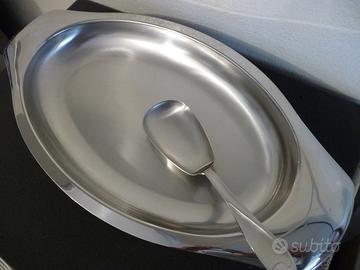 marca Metallurgica Motta, in confezione originale, mai usato. Completo di cucchiaio inox 18/10 come il vassoio. Dimensioni: esterne 54x28, interne 40x24,5. Modalita' di consegna da concordare.