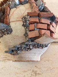 Sezione di piccola giara decorata con mattoncini in cotto raffiguranti una finestrella e un pozzo tutta fatta rigorosamente a mano