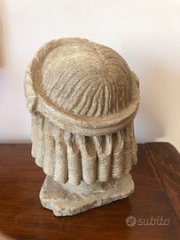 Mezzo busto in Marmo fatto a mano , da notare sotto la base la lavorazione lasciata grezza fatta con lo sgrossino e lo scalpellino. Epoca fine del XIX primi XX secolo . Rappresenta un uomo. Le misure sono: Altezza cm.22 e base 13 cm. Piccola sbeccatura sul naso, se no è in perfette condizioni di integrità.