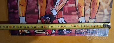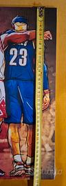 Quadro 40x30 cm un'opera d'arte digitale dallo stile grafico e contemporaneo, che celebra tre delle più grandi leggende della storia del basket NBA. Al centro della composizione troviamo Michael Jordan con la sua iconica maglia numero 23 dei Chicago Bulls, affiancato a sinistra da Kobe Bryant, che indossa la divisa gialla numero 24 dei Los Angeles Lakers, e a destra da LeBron James nella sua versione con la maglia numero 23 dei Cleveland Cavaliers. L'illustrazione utilizza tratti neri decisi simili a schizzi di inchiostro e una palette cromatica vibrante che enfatizza il legame fraterno tra gli atleti, rappresentati di spalle mentre si tengono per le braccia in un gesto di profonda stima reciproca.