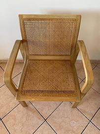 Rara sedia Mid Century disegnata da Olivo Pietro in Italia negli anni '70. Caratterizzata da un elegante telaio curvo in faggio e seduta/schienale in canna. Ottima come sedia occasionale o sedia da scrivania.