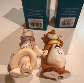 2x statuette in ceramica di Milo e Tina, mascotte olimpiadi invernali Milano Cortina 2026 nuovi con confezione originale