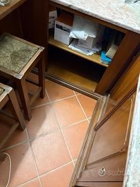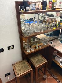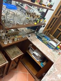 Trattabili Vendo mini bar da casa in buone condizioni, fatto di legno, la base sopra fatta di marmo, e poi composta da una bellissima vetrata dopo appoggiare bicchieri bottiglie ( vedi in foto), compresa di due sgabelli di legno