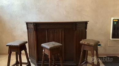 Mini bar, con espositore e tre sgabelli.