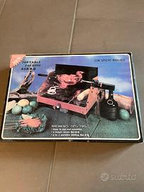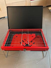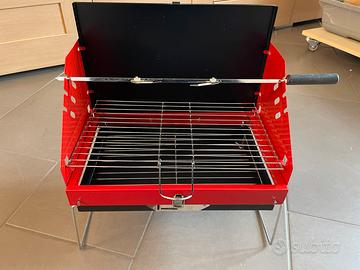 Mini BBQ portatile anni 70 con gira arrosto manuale e cottura su più livelli. Griglia cm 35,5x21