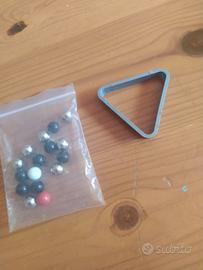 biliardo da gioco messo bene con palline bacchette messo molto bene un po' sporco