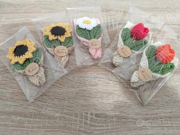 Bomboniera aprifesta x comunione, battesimo, cresima e matrimonio ecc.. Disponibile tulipano,rosa, margherita e girasole colori a scelta misura 12 cm confezione completa.