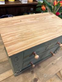Deliziosa mini cassettiera in legno, di piccole dimensioni, perfetta come porta gioielli, porta oggetti o svuotatasche.