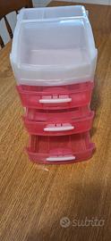 mini cassettiera adatta a bambini, con tre cassetti, due vani e un'apertura superiore, adatta per ritirare cartoleria, piccoli giochi