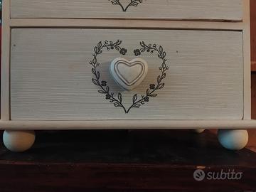 mini cassettiera da appoggio con due cassetti e piccolo difetto sul piano
