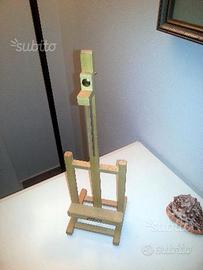 Vendo per regalo inutilizzato mini cavalletto in legno, adatto a contenere fotografie e/o mattonelle decorative come da foto. Altezza 43 cm. Nuovo mai usato, con fermo scorrevole per determinare altezza e bloccare. Consegna a mano in Campogalliano.