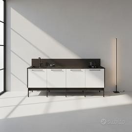 La composizione è progettata con un design minimal ed elegante, ideale per ambienti contemporanei, showroom, appartamenti di pregio, studi professionali e strutture ricettive che richiedono una cucina di immagine.