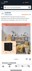 Vendo mini frigo bar portatile Klarstein, capacità 30 litri, usato pochissimo e in condizioni eccellenti.