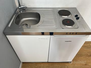 Mini kitchen cucina pratica ed essenziale. Lavello, due fuochi e mini frigo in soli 100 cm di larghezza! Misure 100x60x87m. Marca Respekta. Acquistata nuova senza rubinetto a €590. Occasione usato in buona condizioni €195. Rubinetto non incluso.
