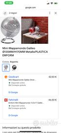 Mini mappamondo da tavola Galileo Circonferenza 135 mm Altezza 170 mm Color argento Nuovo