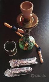 Piccolo narghilè da 24 cm, perfettamente usabile e funzionante, comprese due confezioni di carboncini.