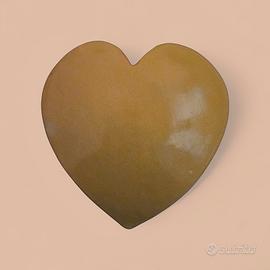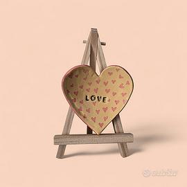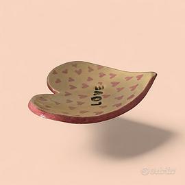 Splendido piattino decorativo a forma di cuore, realizzato e dipinto a mano con uno stile rustico e artigianale.