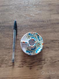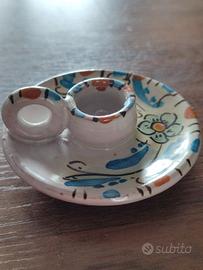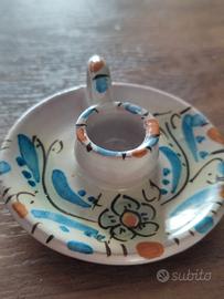 portacandela in ceramica noto anche come bugia, caratterizzato da un piattino con manico. ceramica dipinta a mano tradizionale.