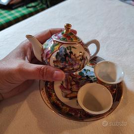 Mini servizio thè/saké con piatto teiera e due tazze integre.