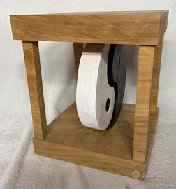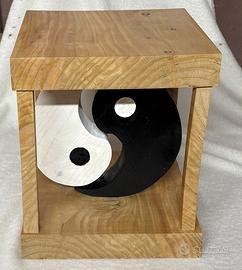 Piccolo tavolino o oggetto da esposizione, rialzo, in legno di cedro yin-yang. Misure 30x30x34. Prodotto artigianale fatto a mano. Nuovo.