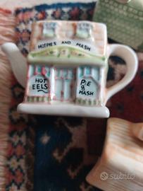 Mini teire da collezione anni 90 , a forma di casa, nuove mai utilizzate. Per la vendita separata 15 euro cadauna, per tutte e quattro le teiere 40 euro.