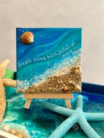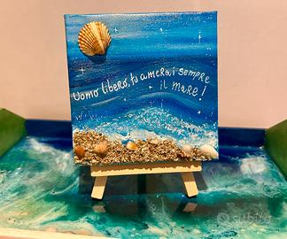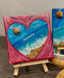 Mini tele dipinte a mano con finitura lucida in resina o vernice.
