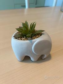 Mini vaso bianco in ceramica con piantina decorativa. Perfetto come oggetto d'arredo per scrivania, cucina o soggiorno. Stile minimal e moderno.