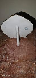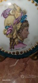 Miniatura Limoges "Mode Paris 1877" – Porcellana Francese Vintage Vendesi splendido ed elegante oggetto da collezione in vera porcellana di Limoges (Francia). Si tratta di una miniatura decorativa su piedistallo integrato, caratterizzata da una raffinata lavorazione artigianale. Dettagli dell'oggetto: Soggetto: Raffigurazione di una dama con acconciatura e cappellino d'epoca, con la dicitura "Mode Paris, 1877". Materiale: Pregiata porcellana bianca con bordo lavorato in blu opaco e finiture in oro zecchino (bordatura a rilievo e piedini dorati). Marchio di Autenticità: Sul retro è presente il timbro blu originale "Made in Limoges, France". Dimensioni: Ideale come pezzo da vetrina o soprammobile decorativo (peso circa 70g). Stato di conservazione: L'oggetto è in buone condizioni vintage. La porcellana e il decoro centrale sono integri; si segnala solo una piccola mancanza di colore sulla parte blu del bordo superiore (come visibile in foto), dettaglio che non ne pregiudica il fascino complessivo. Prezzo: 25€ Spedizione: Disponibile tramite TuttoSubito o ritiro a mano a Anzio/Nettuno Contattami per ulteriori informazioni o foto aggiuntive!