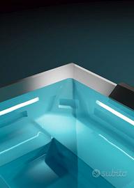 Elegante spa con sistema idromassaggio invisibile, potente e integrato con luci LED per cromoterapia. Design pulito e moderno grazie a bocchette nascoste in fessure interne, con illuminazione multicolore.